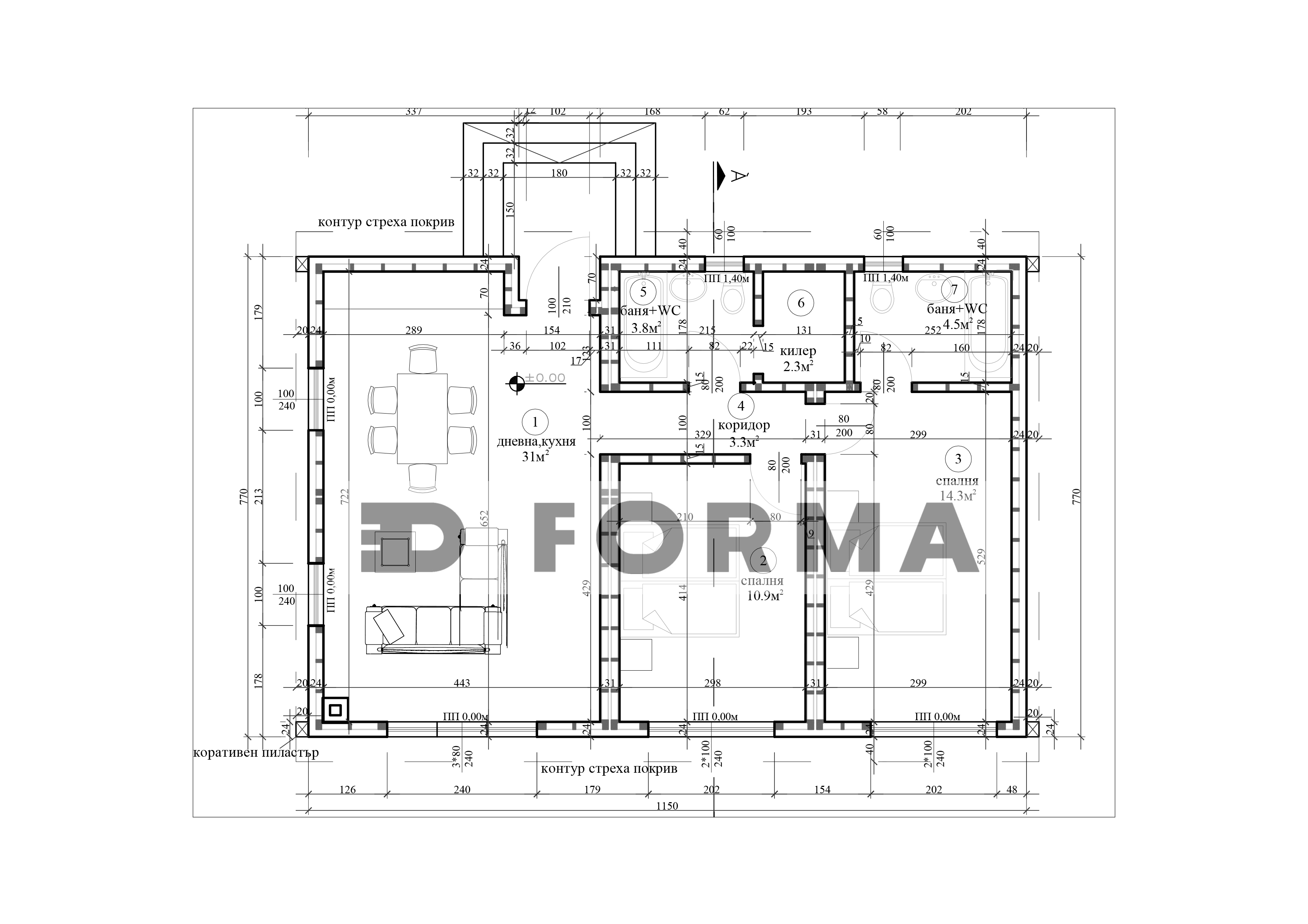 - ВЪНШНИ РАЗМЕРИ – 12,57/7,29 м.
