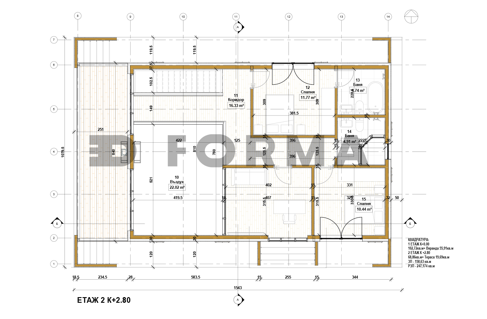 - РЗП – 269,97 м2, от които 62,67 м2 веранди и 21 м2 лоджия