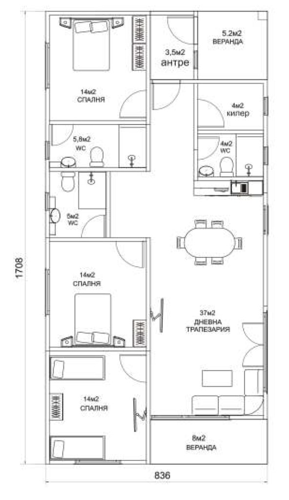 - ВЕРАНДА – 2 бр. – 8 м2 + 5,2 м2