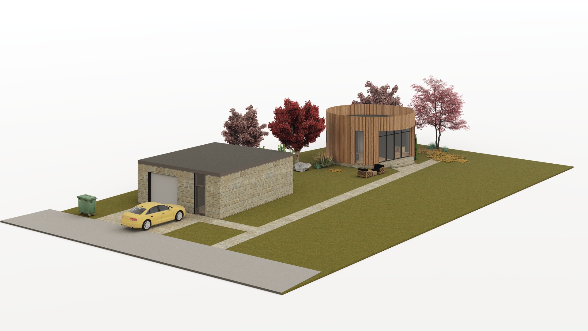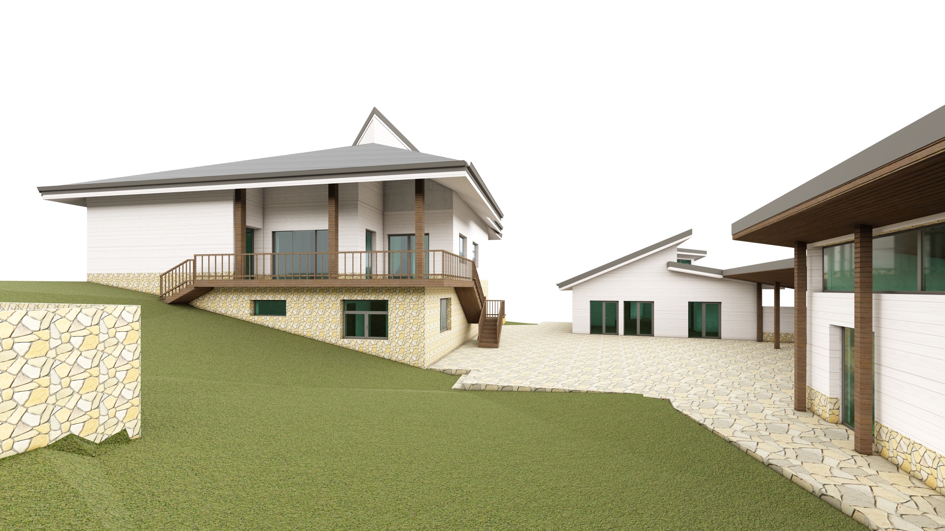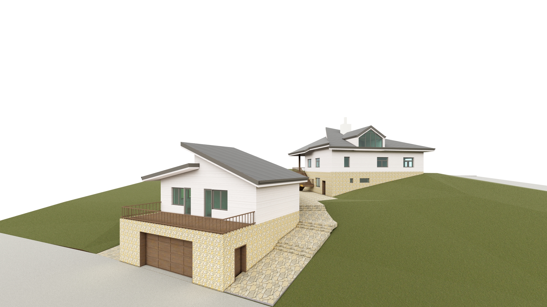 Строителна система и визуализация на ансамбъл от еднофамилни къщи с изба, обл. София